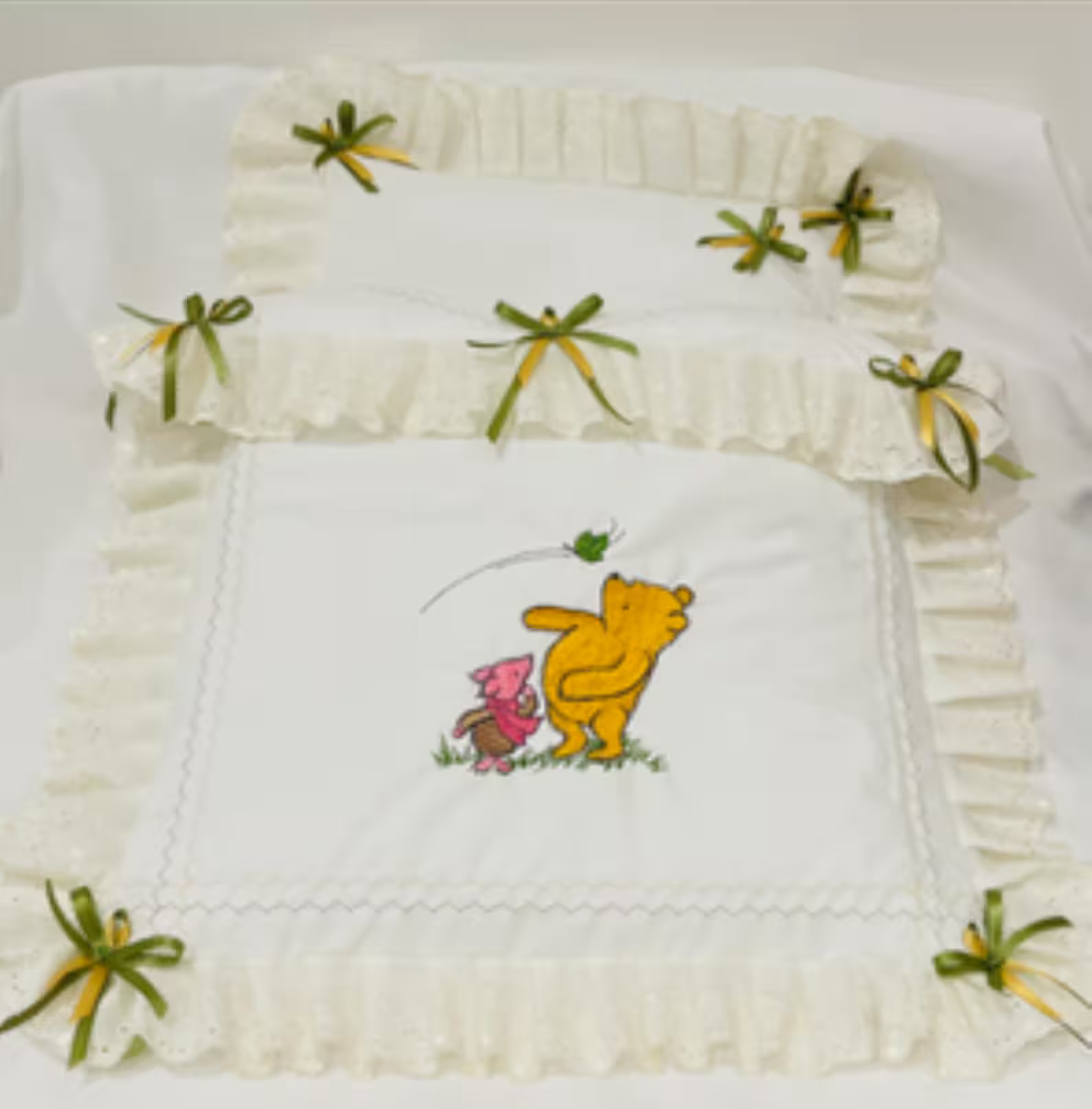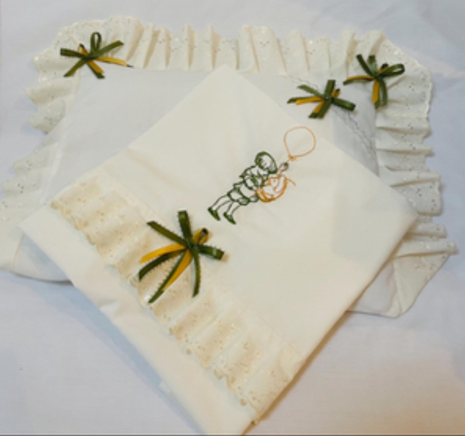 Sheets 1 Plain 1 Lace trimmed with embroidery details and bow