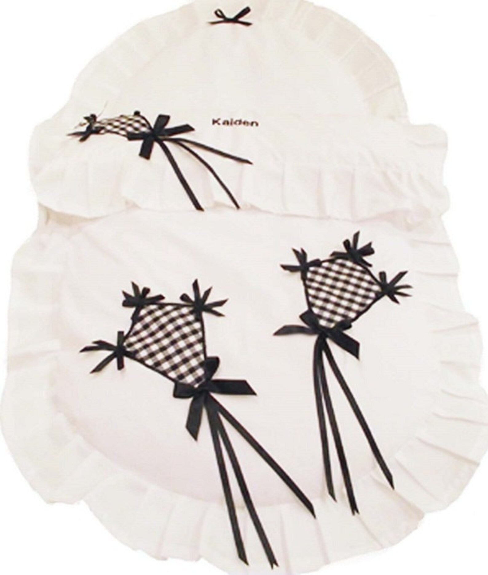Poly cotton Pram/Stroller quilt & pillow set with gingham Kite appliqué design.. embellished with double satin ribbon strands and bows, trimmed with simple fabric frill.